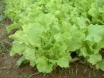 Green Grand Rapids type lettuce with broad frilly leaves.